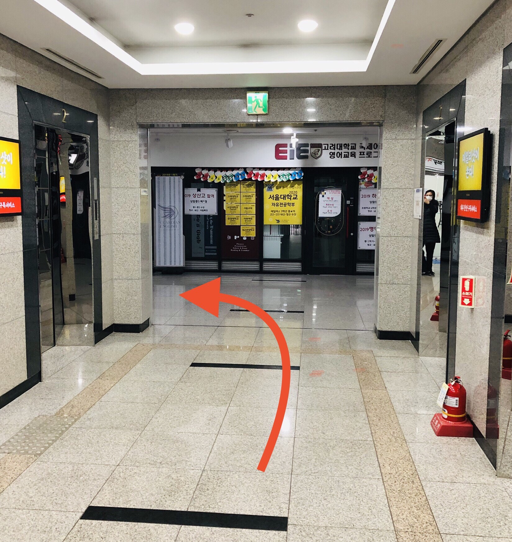 エレベーターで2階へ上がり、突き当りをに左に曲がります。▼