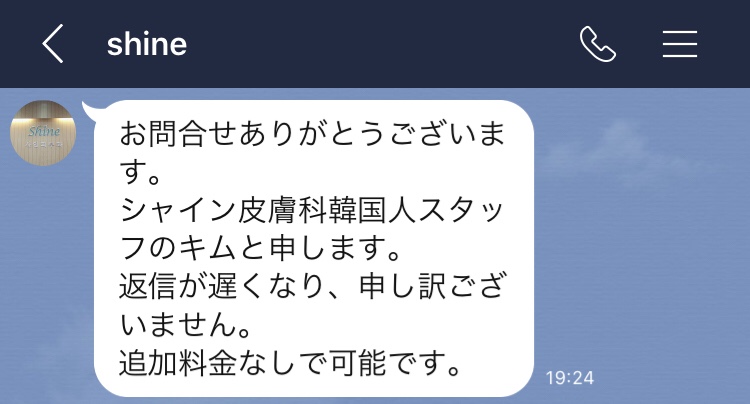 シャイン皮膚科は通訳代は施術代金に上乗せされることはなかったです。