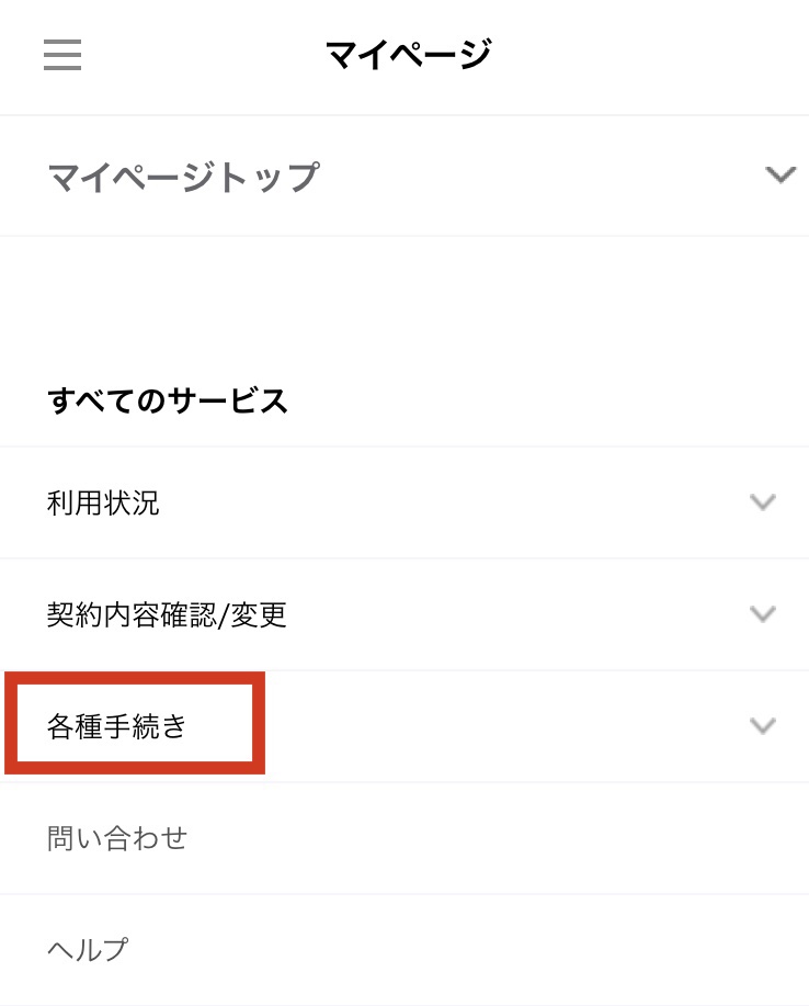 - ログイン後、LINEモバイルのマイページにある「各種手続き」に進む