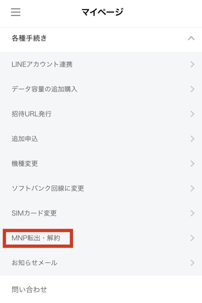 - 「MNP転出・解約」を選択する
