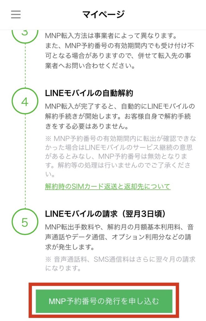 LINEモバイルでMNP予約番号を取得するための手順は以下の通りです。