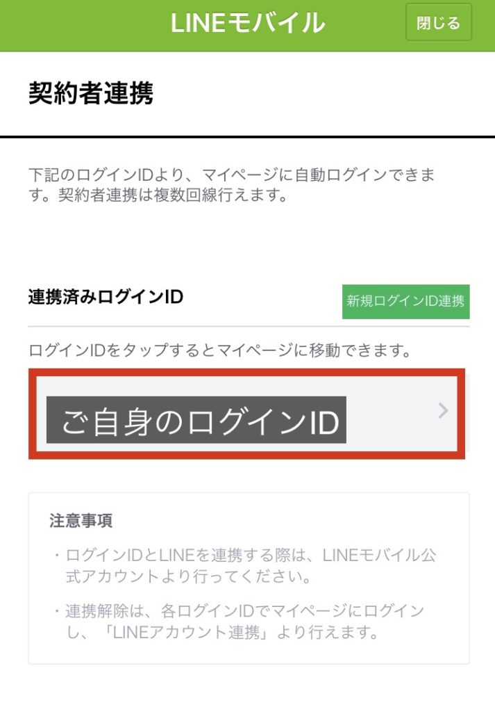- LINEモバイルの「マイページ」にIDとパスワードを使ってログイン