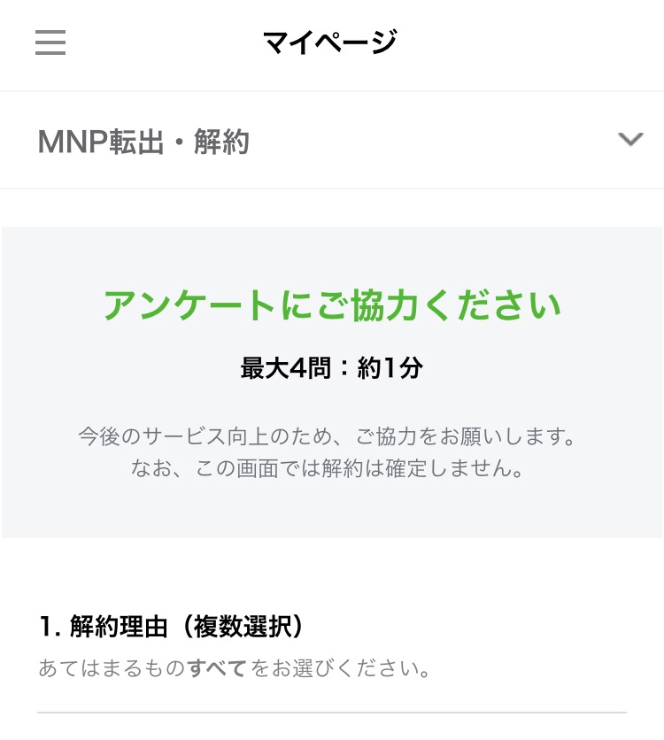 アンケート(解約理由・使用用途・通信速度・通信容量)に回答します。