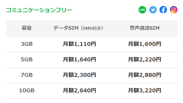 私がLINEモバイルを選んだ最大の理由は、LINE、ツイッター、フェイスブック、インスタグラムのデータ通信量がゼロのプラン【コミュニケーションフリー】