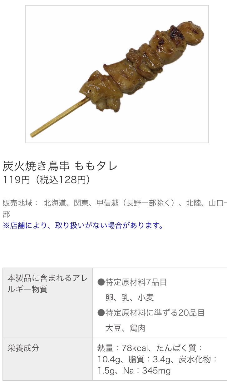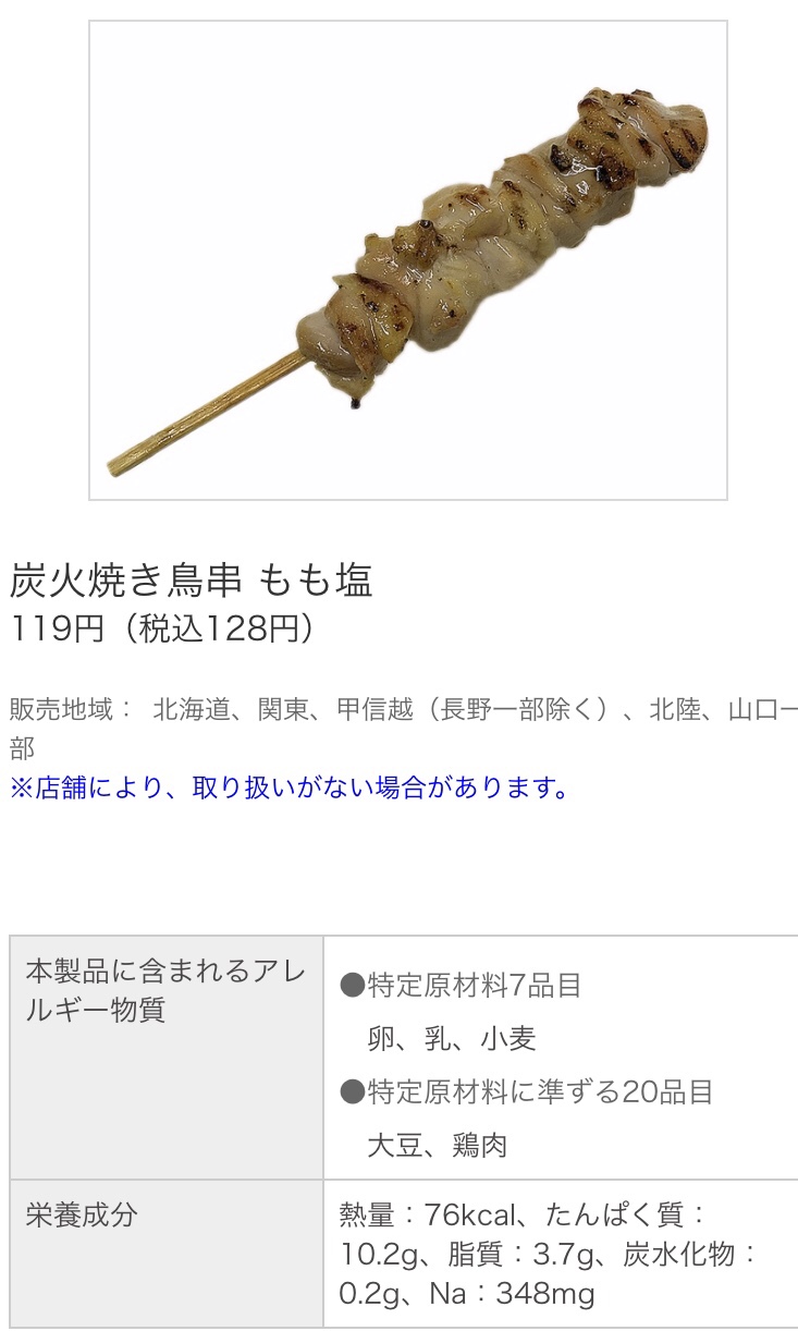 やはり、どこのコンビニの焼き鳥も、炭水化物が3g以下と非常に低糖質でケトジェニックな商品ばかりですね。