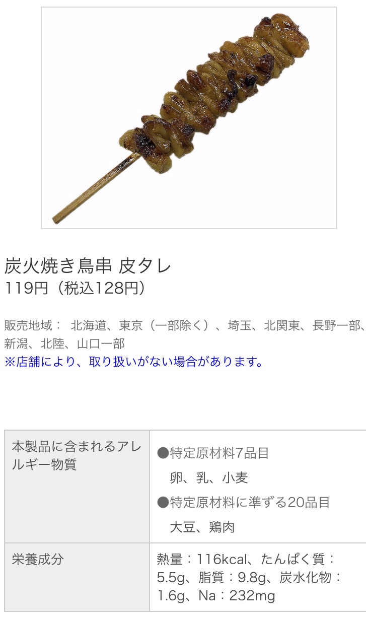ファミリーマート、ローソン、セブンイレブン、3社とも焼き鳥、フライドチキン、フランクフルトを販売しています。