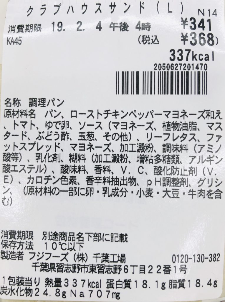 炭水化物は少し多めですが、タンパク質の量は10種類の中で、1番多いクラブハウスサンド。