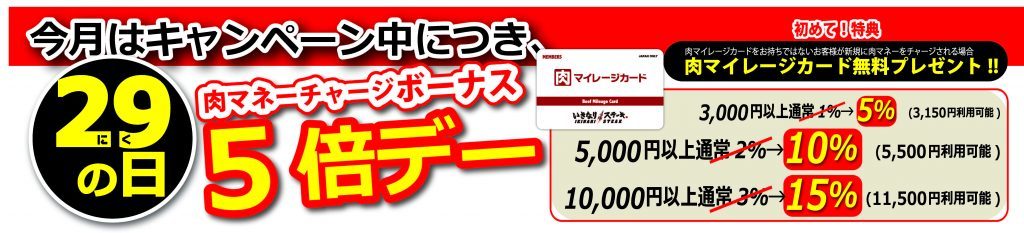 5倍お得!肉マネーをチャージするなら毎月29日を狙え!