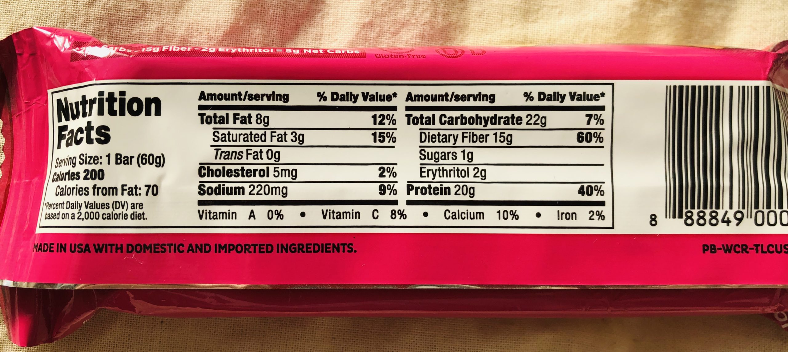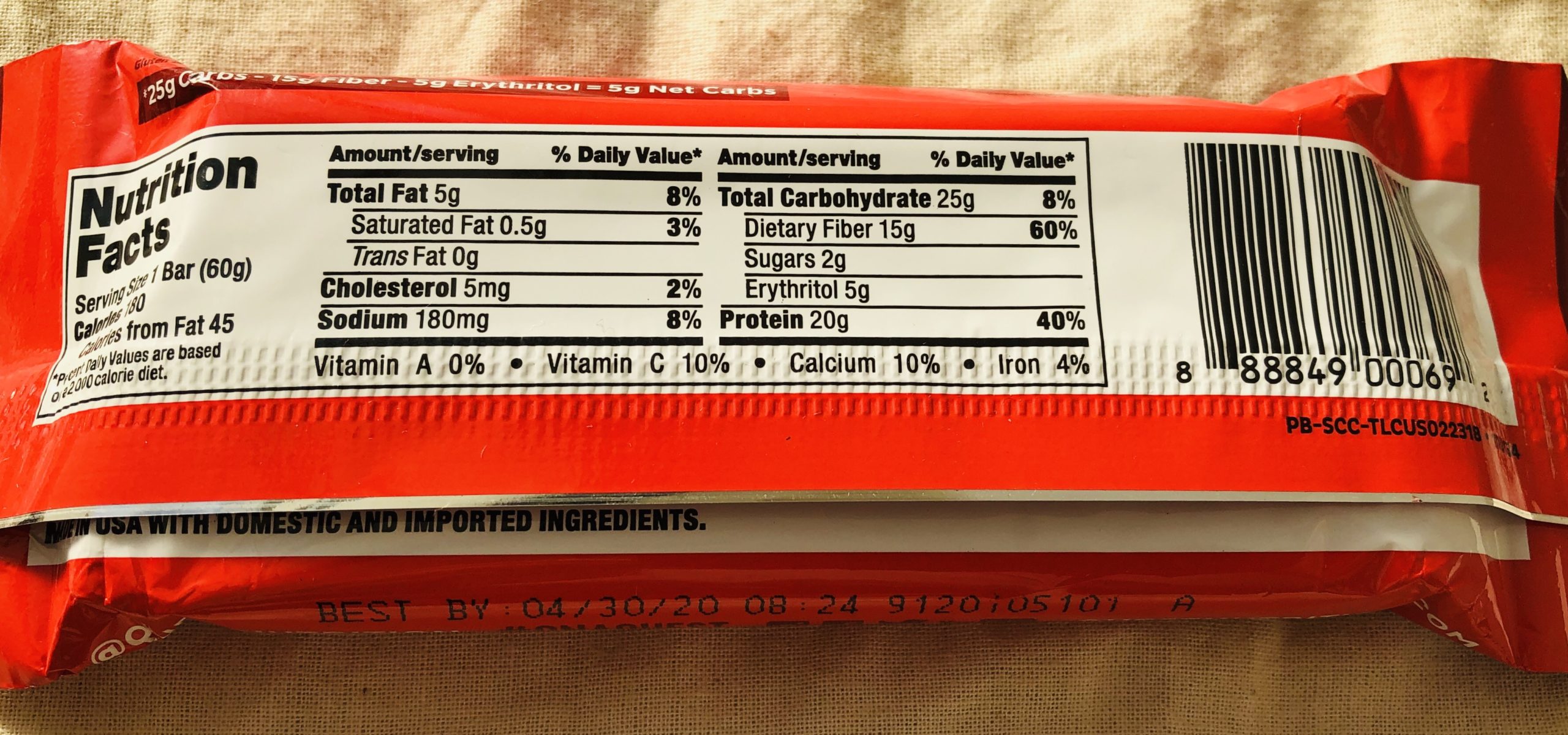 1本60gの中の糖質は驚異の1g!!!タンパク質は20g!!